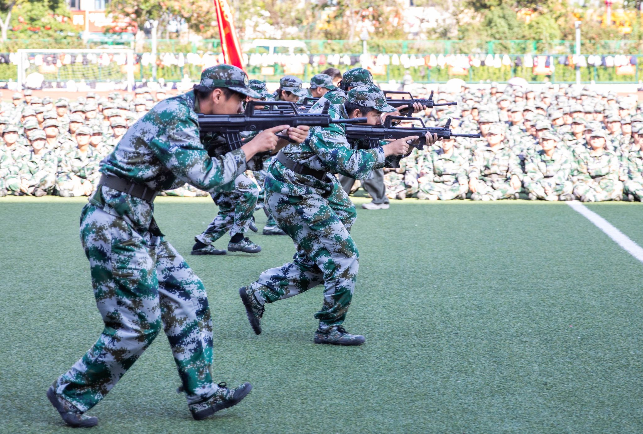 烈日当空,热血沸腾。同学们在教官铿锵有力的指令声中,展开了队列动作、战术基础、军体拳等多项军事训练。“齐步走!”“正步走!”“向左转!”——一声声口令如战鼓擂响,汗水划过年轻的脸庞,浸透身上的迷彩,每一滴都是成长的见证,每一步都是意志的锤炼。