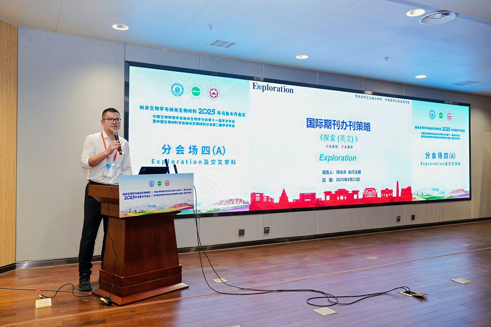 近日,我校主办的国际综合学术期刊 Exploration在“2025中国生物物理协会纳米生物学分会与中国材料协会纳米材料学分会共同国际学术年会Exploration交叉学科论坛”上,正式成立青年编辑委员会(以下简称“青委会”)并举行首届委员聘任仪式。该活动同步进行线上直播,吸引了来自中国、美国、欧洲,英国、新加坡、日本、韩国、澳洲、新西兰等20个国家的200位专家学者线下参会,线上关注人数超过2万人。大会由期刊副主编、国家杰青、中国医学科学院放射医学研究所刘鉴峰研究员主持。