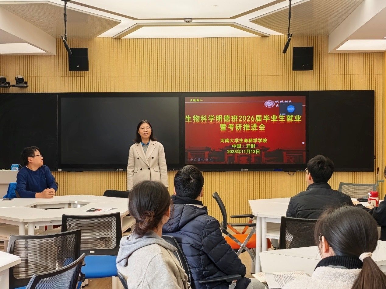 11月13日,生物科学2022级明德班在生命科学学院A305智慧教室举办毕业生就业暨考研推进会。副院长赵海鹏,生物科学系主任刘凌云及明德班全体同学参加,会议邀请多位已考取研究生或保研的往届毕业生现场交流经验。会议由明德班班主任陈敏主持。