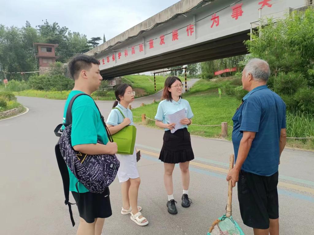 实践团成员以“洛阳—郑州—开封”为实践路线调研,先后在洛阳孟津黄河湿地、郑州黄河文化公园、开封柳园口黄河滩与黑岗口黄河观景台开展黄河生态治理调查和生态科普。通过与当地居民、工作人员以及游客的访谈交流,成员们了解到数十年前的黄河环境破环严重,水土大量流失。近年来通过专项治理和小浪底水利枢纽的调节,黄河流域在涵养水源、生物多样性和区域生态环境等方面得到较大改善,黄河中下游的水面呈现出水波荡漾,水鸟齐飞的和谐景象。团队成员还发现湿地公园附近设有多处分类垃圾桶,工作人员会对游客产生的垃圾进行清扫归类,人们对生态环境的保护意识日益加强。成员们认真梳理调查结果,结合生物学专业知识为当地居民与现场游客讲述黄河生态失衡的危害,提供专业指导和发展建议。