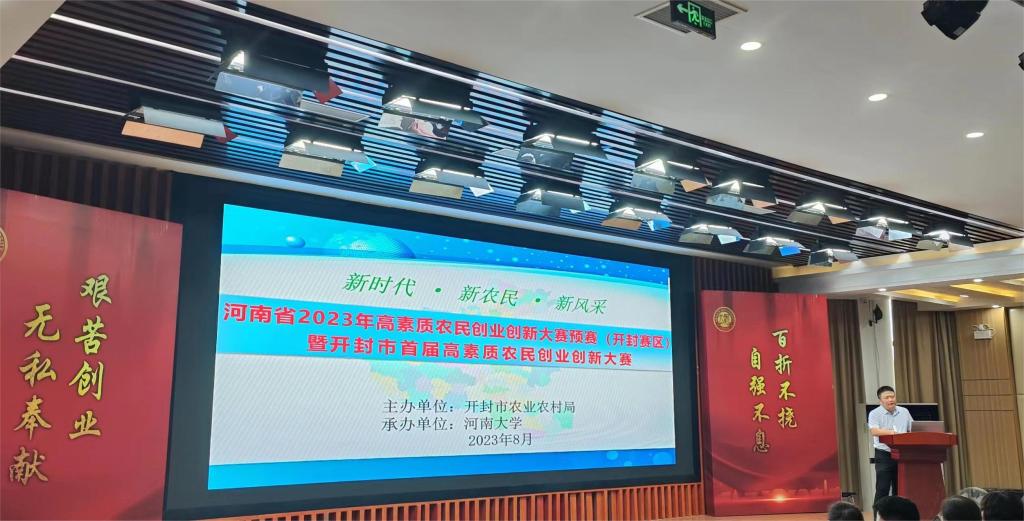 8月19日,河南省2023年高素质农民创业创新大赛开封预选赛在开云kaiyun网页版官网圆形报告厅举行。这是开封市首次举办此类赛事,入围决赛的项目和选手可优先享受相关部门的政策支持。