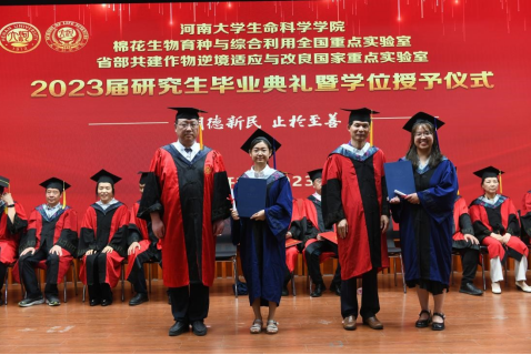 毕业典礼结束后,生物学学科带头人、河南大学原校长宋纯鹏、副校长王学路以及学院领导班子、导师代表与全体毕业生合影留念。