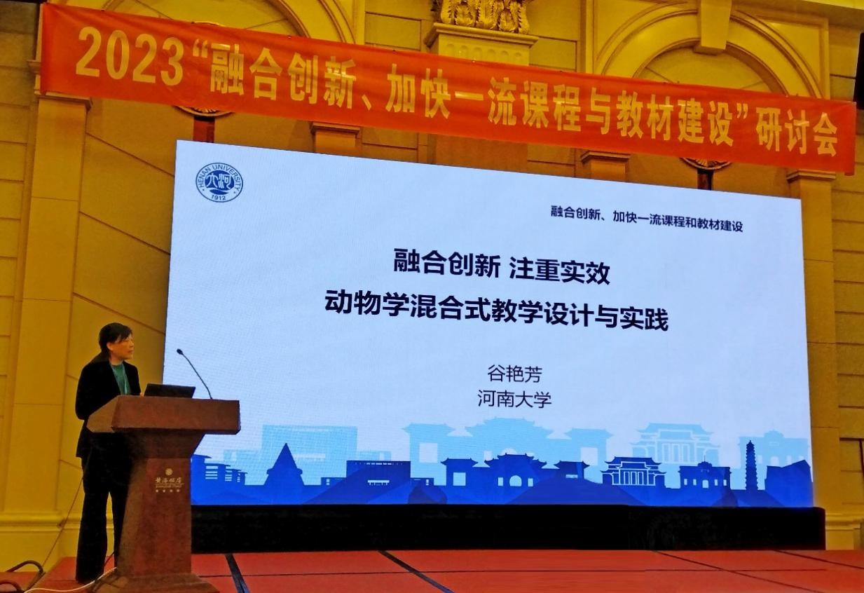研讨会上,谷艳芳应邀作了“融合创新,注重实效——动物学混合式教学设计与实践”的主题报告。她从河南大学生物学一流学科的建设和发展历史展开讲述,结合我院动物学国家级一流课程建设实践、充分利用课程资源投入黄河流域生物多样性调查和生态保护的特色,分享了我院混合式教学改革、科学研究反哺教学、“课程思政”教学设计、黄河流域系列科普活动与学生积极性调动等方面提升课程建设质量和打造一流课程的成功经验和建设成效。