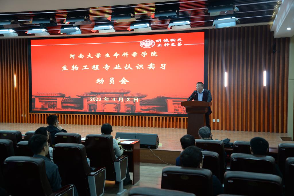 4月3日,经过精心筹备,生命科学学院生物工程专业认识实习动员会在学院圆形报告厅三楼举行,实习工作正式启动。副院长赵海鹏、党委副书记程亚敏、实习指导教师组全体成员和全体实习学生参加会议,会议由生物工程系主任、实习队领队兼队长刘宇鹏教授主持。