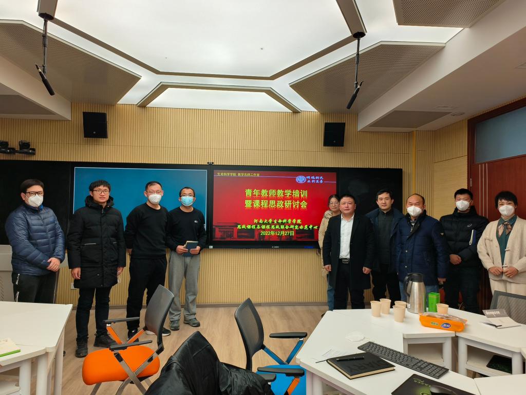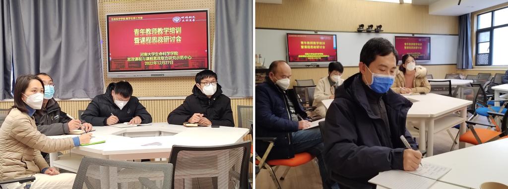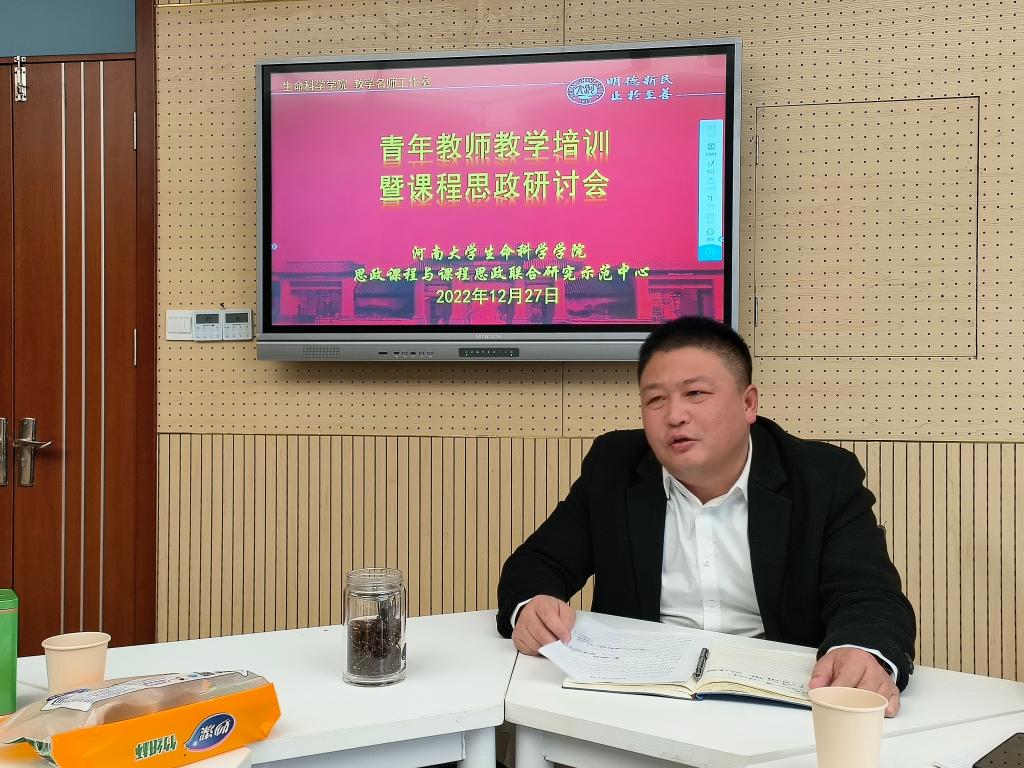 为做好教学名师对青年教师的传帮带工作,帮助青年教师站稳讲台打牢职业基础,生命科学学院于12月27日上午在学院智慧教室以线上线下相结合的方式召开青年教师教学培训暨课程思政研讨会。特邀学院执行院长、河南省教学名师王刚教授,河南省教学名师谷艳芳教授,副院长、河南大学教学名师赵海鹏教授为本次主讲嘉宾,学院青年教师以线上和线下的方式参加了研讨会,会议由教务办公室主任张要军主持。