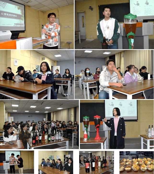 郑梓威简要介绍了红葡萄酒学的基础知识,带领大家学习了“一看二闻三品尝”的品酒专业步骤,同学们反响热烈,到场的领导和老师也连连称赞。期间同学们还上台亲自开瓶,体验“砰”一声的开瓶仪式感。除了香槟、红酒,生科院自制的精酿啤酒也收到大家一致好评,2020级药学研究生曹桦强为大家讲解了啤酒的酿造工艺与发酵原理,邀请大家品尝了河南大学110周年校庆特制的精酿,受到了同学们的热烈推崇。