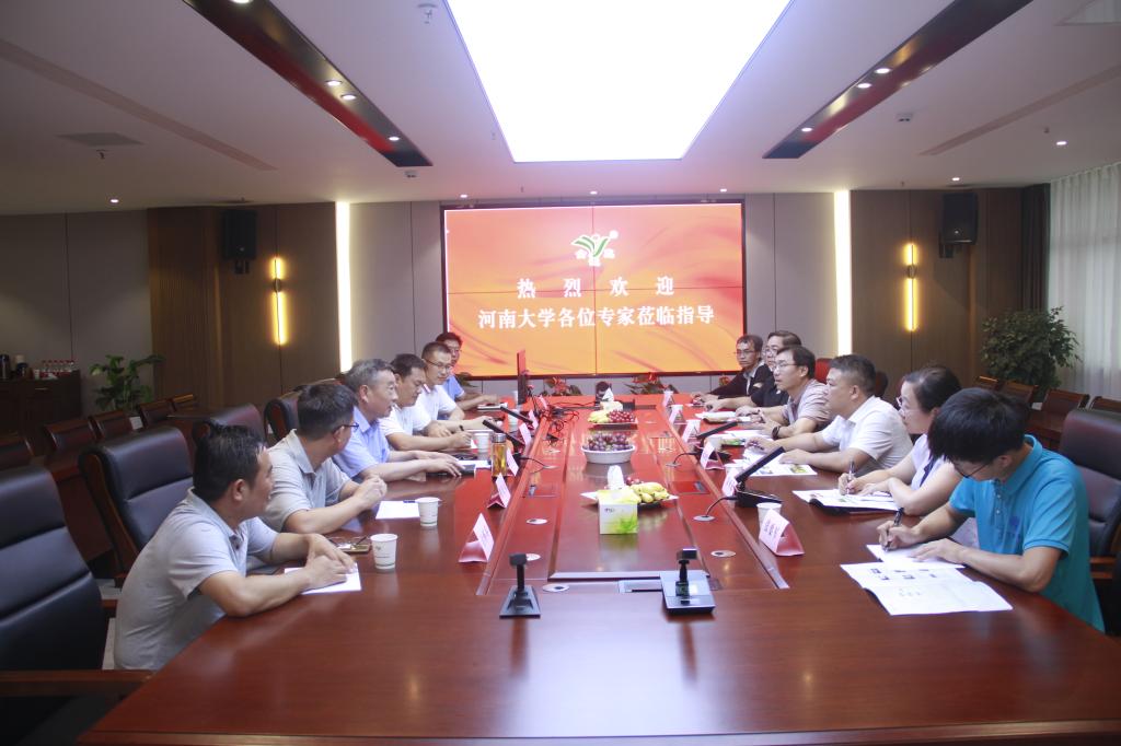 新乡基地考察结束后,赵海鹏一行到金苑种业郑州总部与公司管理层和技术骨干进行座谈交流。总经理焦学俭、副总徐小伟、研发总经理胡徐来、研发副总王启磊、测试经理计怀春和育种家沈向磊参加座谈交流,座谈会由焦学俭主持。焦学俭对生命科学学院的到访表示欢迎,他介绍了金苑种业的发展历程、现状以及未来发展目标,希望金苑种业与我院以双方共建的实习基地、校企协作培育植物科学与技术专业人才为契机和媒介,促进更多合作、协同攻关,互相支持,共同提升。赵海鹏感谢金苑种业的热情接待,介绍了学院的专业设置和“新农科”“新工科”建设情况,他表示,植物科学与技术专业是河南大学目前唯一的农学本科专业,以培养现代育种人才为办学目标,金苑种业系本土知名企业,在农作物新品种培育、推广方面成绩斐然,双方应该携手共勉,贯彻落实习近平总书记关于农业重要讲话批示指示尤其给全国涉农高校书记校长和专家代表回信重要精神、视察清华大学重要讲话精神,主动担当,有所作为,做好校企产教融合协同育人,办好专业,培养出适合社会经济发展需要,能为“中国人的饭碗任何时候都要牢牢端在自己手中,饭碗主要装中国粮”这一重要指示要求做出贡献的种业专业人才。