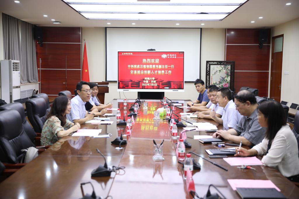 王刚代表学院欢迎黄伟一行的到来,简要介绍了河南大学生物学科近年来在人才培养、师资队伍、平台建设和学科建设等方面取得的成果。陈良介绍了植物园科学研究、管理支撑、人才队伍、物种保育、科普教育和国际合作等方面的详细情况;蔡小丽就研究生培养模式和规模、奖助体系、联合培养以及与高校共建本科生菁英班等方面详细进行了介绍。赵海鹏从介绍学院专业设置着手,着重介绍了学院菁英计划、明德计划以及卓越人才计划的实施情况和培养成效。
