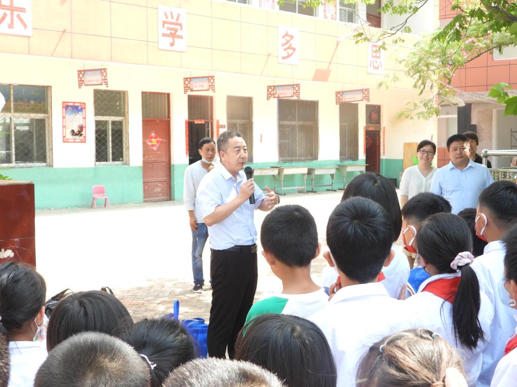 吴建伟向太康二郎庙小学的师生们介绍了河南大学和生命科学学院的基本情况和发展历史,他说到,看到张鹏程校长的事迹很是感动,张校长用行动诠释了师者大家,是大家学习的榜样。生命科学学院作为一流学科建设学院,重视人才培养和社会服务工作,围绕“立德树人”、“无私奉献”开展了系列志愿服务活动。学院拥有很多先进的科学技术和优秀的专业人才,希望可以通过科技和爱心帮扶,在乡村孩子们的心中也播下科学的种子,为乡村教育贡献一份力量!