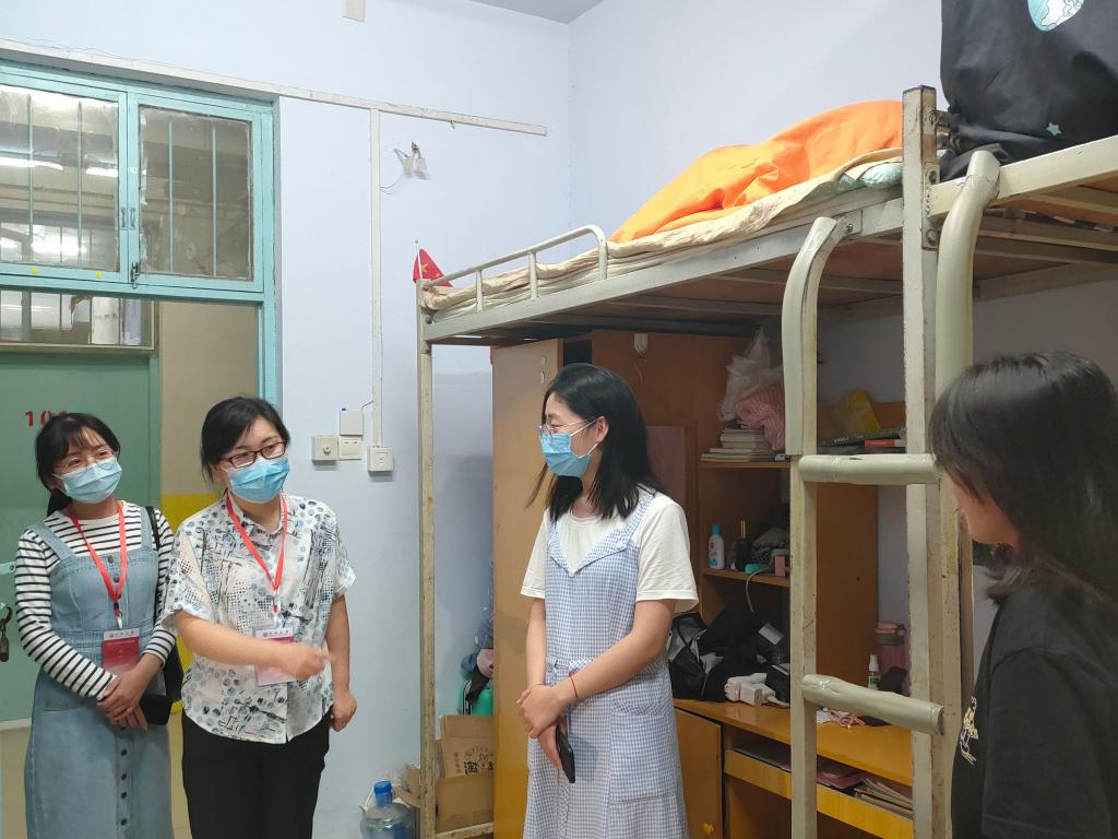 生命科学学院不仅十分关心学生的学习问题,也非常关注学生的日常生活和心理健康问题。为疏导疫情期间学生们紧张焦虑情绪,及时了解掌握疫情期间学生日常生活和心理状况,5月13日-5月22日之间,由生命科学学院党委书记吴建伟,执行院长、党委副书记王刚,党委副书记程亚敏等多次带队深入到北苑、南苑学生公寓了解学生生活、学习和心理健康状况,以便及时掌握学生思想动态。在走访过程中,学院领导与同学们进行了亲切交谈,详细了解学生的日常生活和学习状况。走访过程中提醒同学们:要牢记用电安全,不使用违规电器;保持宿舍卫生,营造干净整洁的生活环境;保持良好的心理状态,积极应对生活和学习。通过宿舍走访和面对面交流,拉近了学院领导老师和学生之间的距离,也让同学们深深感受到学院的拳拳关爱之心。