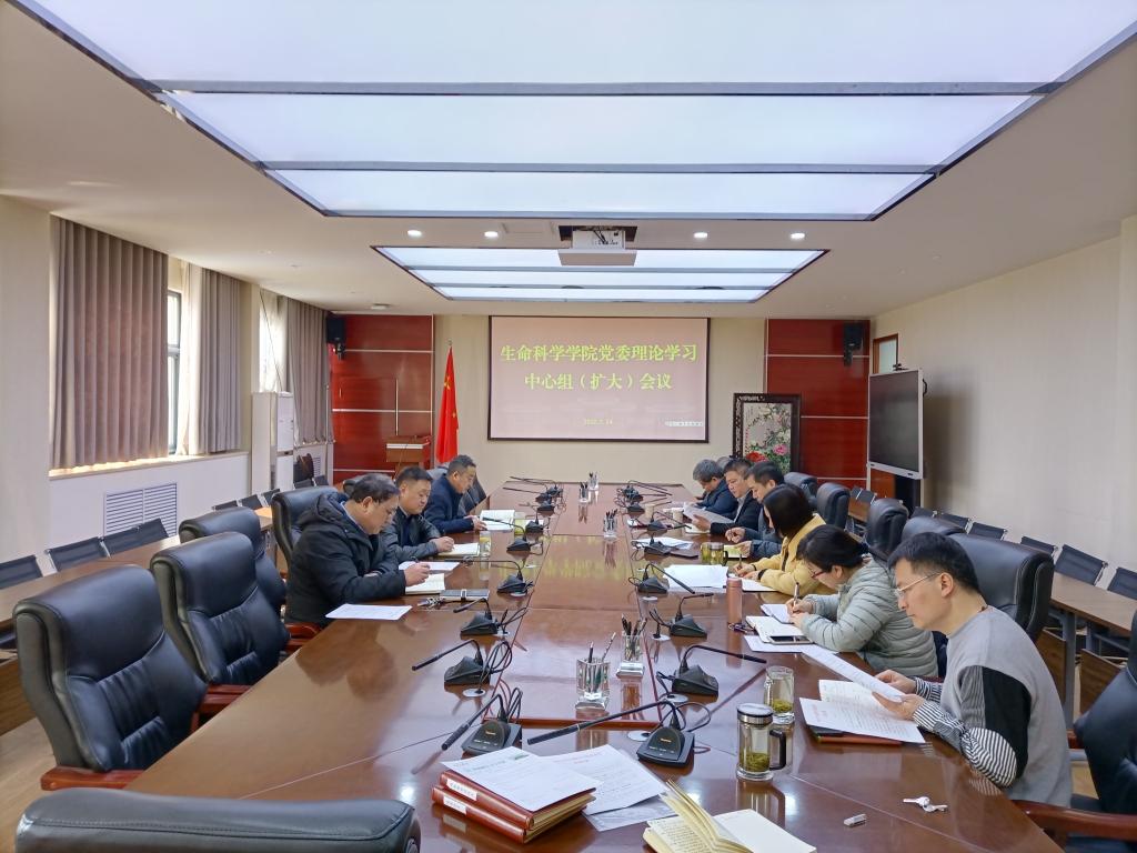 2月24日上午,生命科学学院在学院B201会议室召开党委理论学习中心组(扩大)学习会议,学院全体党委委员参加会议。生命科学学院、棉花生物学国家重点实验室、省部共建作物逆境适应与改良国家重点实验室领导班子成员列席会议。会议由学院党委书记吴建伟主持。