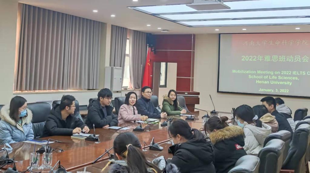 为推进一流学科建设和国际化人才培养,拓展学生国际化视野,增强学生跨文化交流能力,生命科学学院特开设雅思培训班。2022年1月3日上午,2022年雅思培训动员会在学院B201会议室举行。生命科学学院副院长李志芳、雅思班班主任于成德和全体入选学员参加会议,会议由于成德主持。