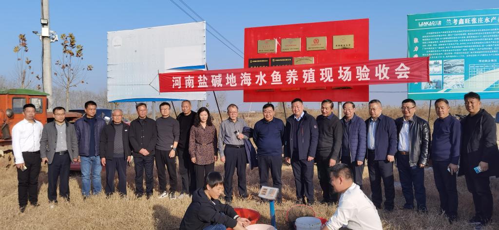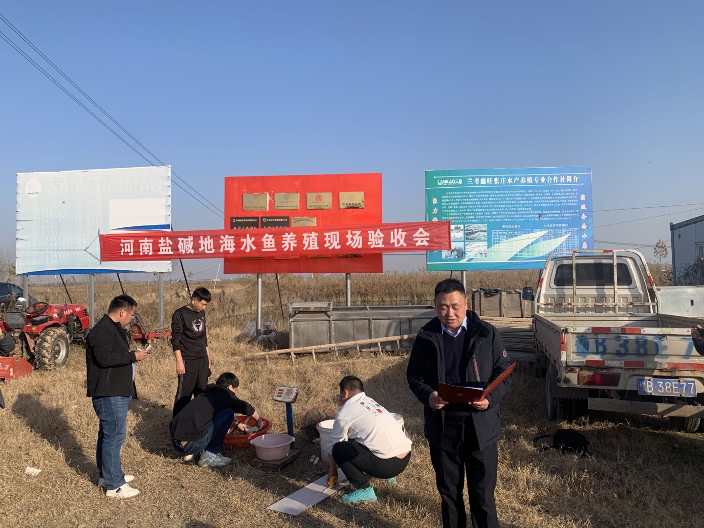11月25日,河南盐碱地海水鱼养殖项目现场验收会在兰考县鑫旺张庄水产养殖合作社举行,河南大学副校长张立新出席并致辞。河南省水产科学研究院、河南师范大学、洛阳师范学院等单位的渔业专家参加现场验收,验收会由河南大学王强教授主持。