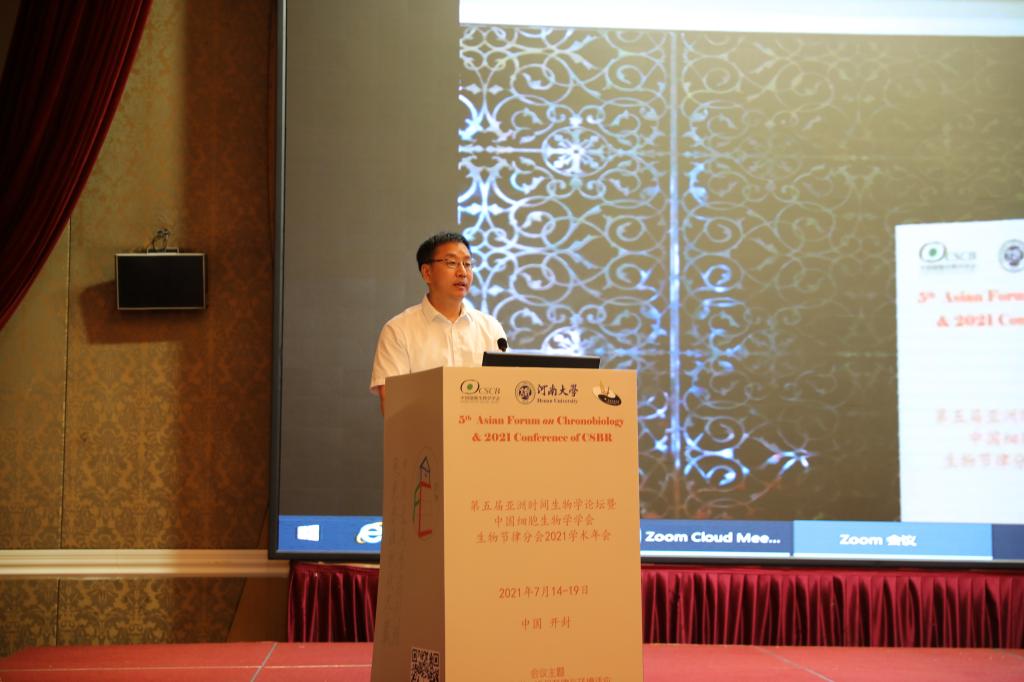 7月15日—19日,第五届亚洲时间生物学论坛暨中国细胞生物学学会生物节律分会2021学术年会在开封开元名都大酒店举行。此次会议由中国细胞生物学学会生物节律分会主办,河南大学承办,Aschoff-Honma 基金会、北京生命科学研究所、中国睡眠研究会等机构联合协办,采用线上线下相融合的方式进行。共有来自亚洲、欧洲、北美等14个国家的知名科学家及青年学者360余人参会。会议主题为“时间生物学:近日节律与环境适应性”,国内外学者同聚于此,畅言真知灼见,共同探讨时间生物学的前沿与发展。
