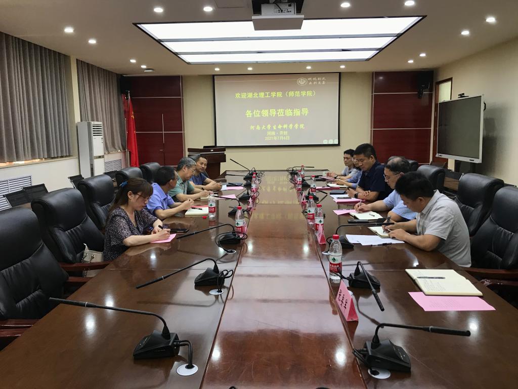 7月6日,湖北理工学院教学重点工作办公室副主任纪鹏、师范学院副院长周加胜、胡邦岳,专业负责人谢志斌一行4人来我院交流访问。学院执行院长王刚、河南大学本科教学评估工作办公室副主任任新会、学院教学副院长赵海鹏、生物科学系主任刘凌云、副主任肖保林、教务办公室负责人张要军参加交流座谈会,会议由赵海鹏主持。