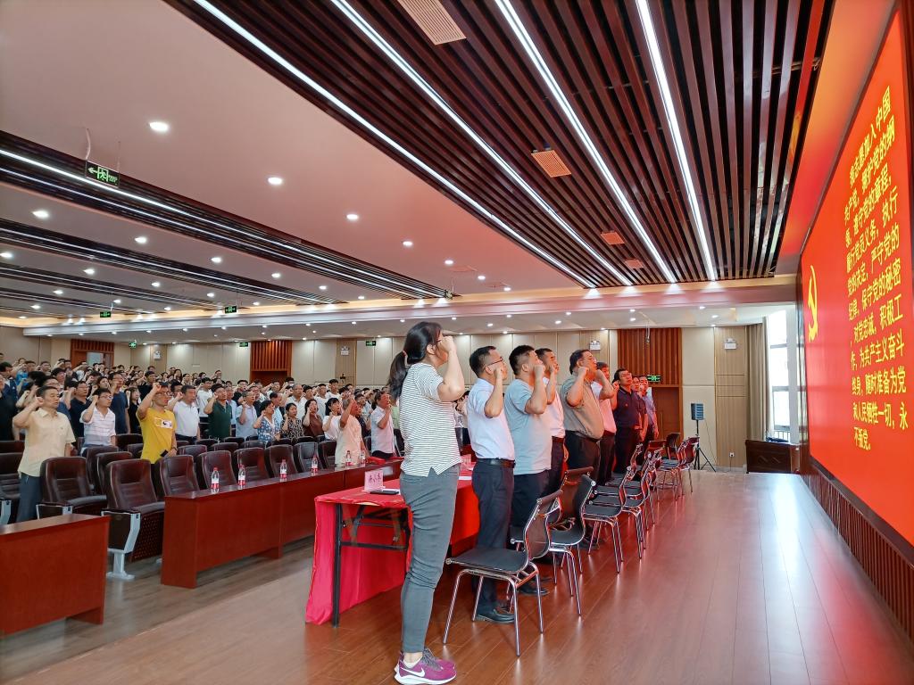 大会进行新党员入党宣誓、老党员重温入党誓词活动。赵东保领誓,全体党员肃立,面向党旗,庄严宣誓。牢记党员初心,强化党性意识,激励党员同志们心中有党、心里爱党、心声为党。