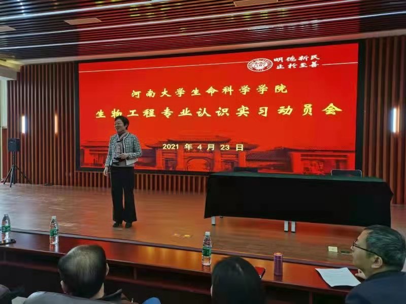 4月23日,经过精心筹备,生命科学学院生物工程专业认识实习动员会在学院圆形报告厅三楼举行,2021年生物工程专业认识实习工作正式启动。河南大学教务处副处长朱显峰,生命科学学院党委副书记张亚歌、副院长赵海鹏,生物工程系实习指导教师组全体成员,校外实习指导教师代表马兵和2018、2019级生物工程专业全体实习学生参加会议。会议由生物工程系主任、实习队领队刘宇鹏主持。