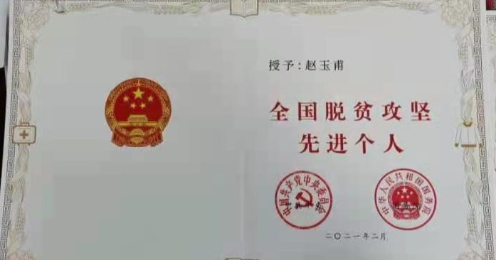 赵玉甫现任濮阳市清丰县马壮桥镇赵家村党支部书记,是河南大学2018级高素质农民培育班学员。两年以来,河南大学积极发挥学科优势和科研实力,以服务地方经济助力脱贫为己任,多次组织专家团队对赵玉甫进行个性化服务回访和实地产业帮扶,使赵玉甫不仅将知识学以所用,更是勤以攻坚、富以引领,充分发挥了乡村发展“领头雁”作用,将食用菌大棚从最初的27座发展到如今的650座,成为全国最大的黑皮鸡枞菌生产基地,并带动本村及周边村庄252户贫困户808人稳定脱贫,人均年收入达到了1.5万元。赵玉甫相继荣获河南省脱贫攻坚奖奋进奖、河南省劳模助力脱贫攻坚十大领军人物、河南省高素质农民创业创新奖、濮阳市劳动模范等荣誉称号,多次受到省委书记王国生,省政协主席刘伟,省委常委、组织部部长孔昌生,副省长武国定等领导的接见。