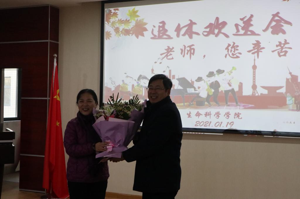 1月19日下午,生命科学学院在学院B201会议室举行教职工光荣退休仪式。学院党委书记赵东保,执行院长、党委副书记王刚出席仪式并讲话。退休教职工张莉及学院教师代表参加活动。仪式由学院党委副书记张亚歌主持。