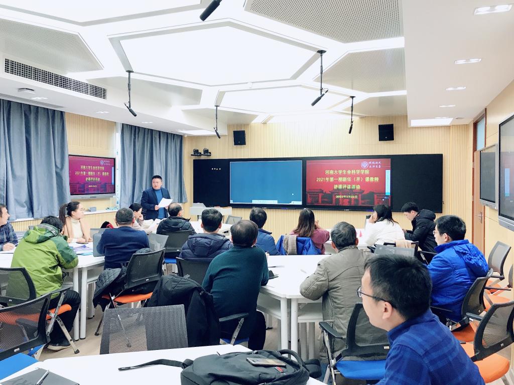 1月21日,2021年第一期新任(开)课教师讲课评议活动在学院智慧教室(A308)开展,12位新任(开)课教师,各系(中心)主任、相关课程组组长参加,活动由副院长赵海鹏主持。