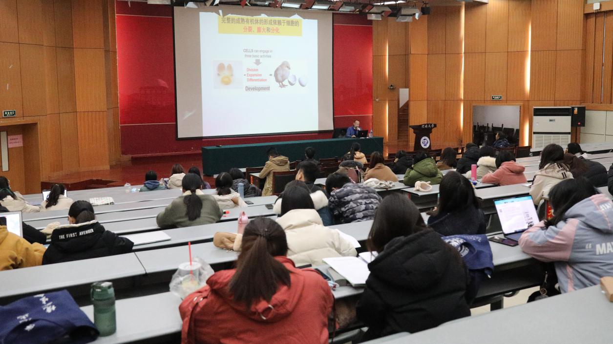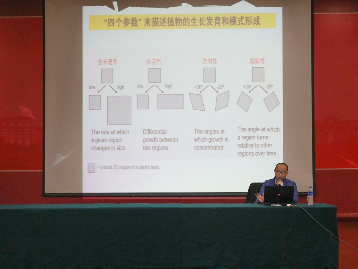 周峰以植物发育的偶然性和必然性、生长方式的起源、植物的总形态、分支的形成、营养到生殖的转换、株型的“分子设计”和总结与展望为提纲对本次报告做了详细叙述。期间还向同学们展示了一些实验图片,提升大家对实验的兴趣。报告结束后,问答环节,同学们踊跃提出自己的疑问,周峰也耐心作答。