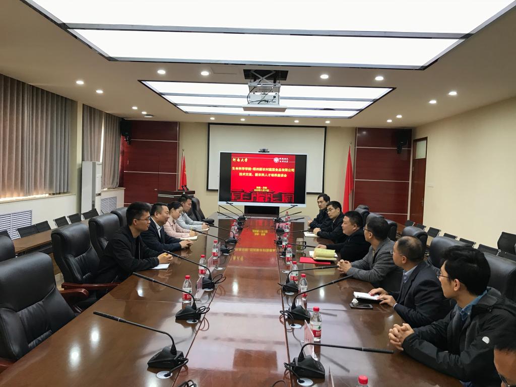 11月13日上午,郑州新农村蔬菜食品有限公司一行5人在董事长李银州带领下,来我院进行技术交流及新农科人才培养座谈。生命科学学院副院长赵海鹏主持座谈会,我院三个基层教学系(中心)的相关专业老师参加座谈。
