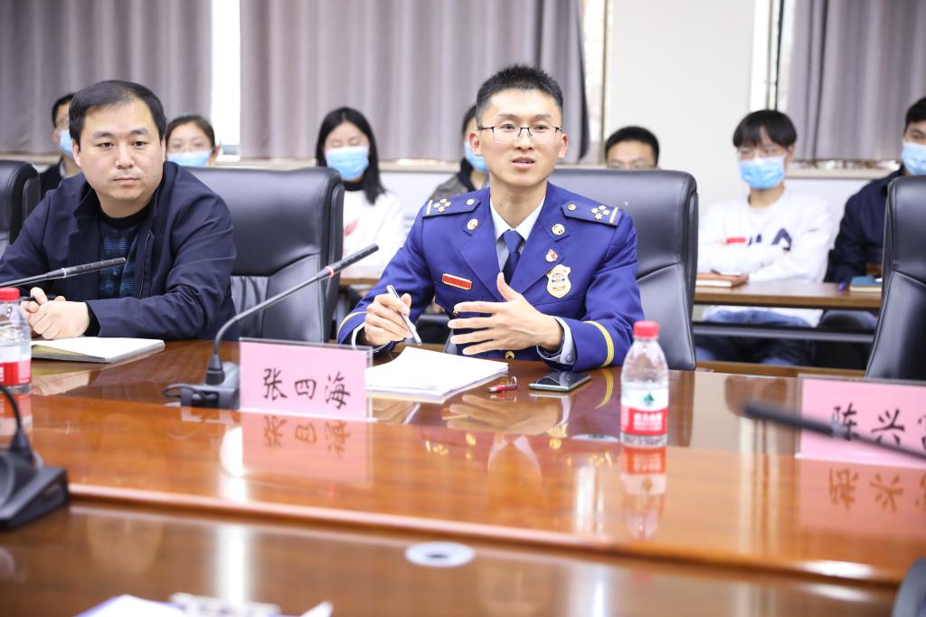 在消防知识培训阶段,张四海结合近几年发生在校园的火灾案例,对高校火灾特点和预防火灾的基本常识进行了讲解,传授了如何对实验室火灾进行扑救、如何组织人员疏散、如何应对火灾现场自救逃生等知识。在师生互动环节,张四海详细解答了师生们比较关心的实验室消防安全、居家消防安全及寝室防火安全等问题。