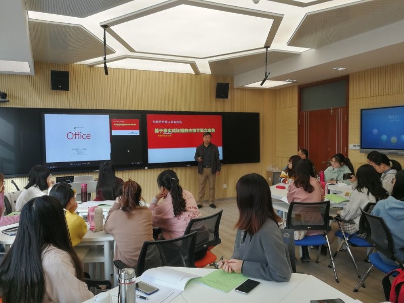 刘富林老师提倡“学教评一体化”理念,认为课程应以教为主导,学为主体再辅以评价。报告中,刘老师多次提到生物学是一门理科,要“讲理”,教学和学习应符合递变的规律,要敢于突破教材,应基于常规实验进行创新,改造实验,从而突破课堂实效。报告会结束以后,同学们积极提问,刘老师也一一从多角度给出回答,学术氛围十分浓厚。