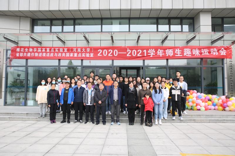 10月18日上午,阳光明媚秋色艳丽。为促进师生交流,丰富课余生活,加强运动意识和强健体魄,棉花生物学国家重点实验室和作物逆境适应与改良国家重点实验室在作物国重大楼前广场共同举办了2020-2021学年师生趣味运动会。实验室常务副主任安国勇、生命科学学院党委副书记张亚歌、实验室副主任王磊、副主任郭敬功以及100余名师生参加运动会。