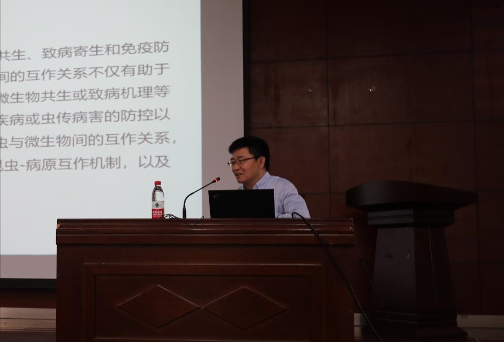 王四宝教授士以肠道微生物为切入点,全面而详尽地讲述了微生物在人体中的作用及意义。他认为了解昆虫与微生物组间的相互关系,不仅有助系统理解昆虫发育、代谢和免疫、协同进化,也为研发安全高效的害虫生物防治、虫媒疾病的防控提供理论基础。报告会结束以后,王四宝教授和在场师生进行了学术交流,学术氛围十分浓厚。