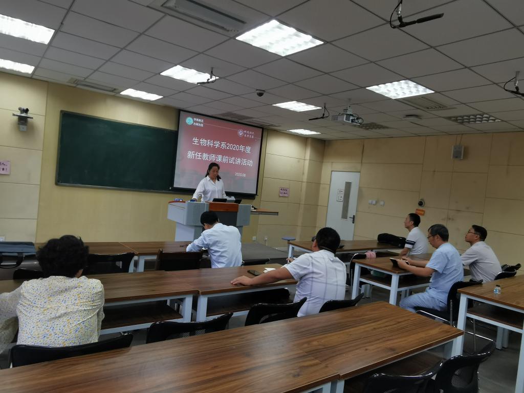 为保证新开课教师的教学质量,我院生物科学系在2020年8月23日上午开展了新开课教师的试讲工作。试讲评议组由河南省教学标兵或校教学质量奖获得者肖保林、刘凌云、赵海鹏、刘宇鹏和高安礼等5人构成;生物科学系系主任刘凌云主持该项工作并担任评议组组长。