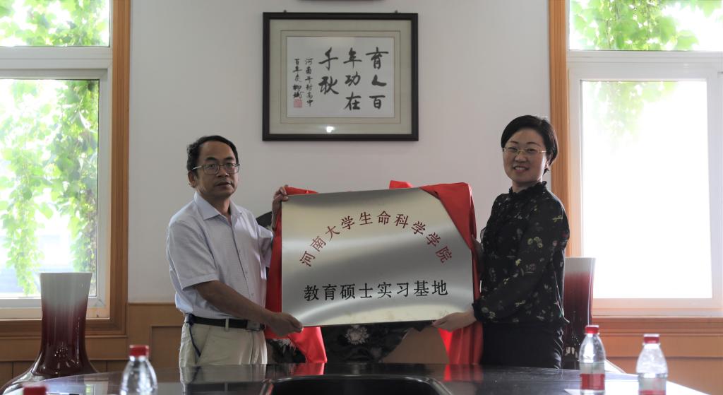 河南大学教务处处长朱显峰,表示要加强高校与中学的密切联系,既要培养热爱生物的学生,又要培养优秀的生物教师。开封市高级中学作为生命科学学院专业硕士教育实习基地,为学院相关专业学生提供实践教学条件和便利,完成各项实践教学任务。双方将定期互通信息,总结交流经验,确保院校协同育人持续开展。