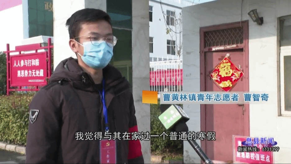 “现在是疫情防控的关键时刻,请您在家中自行隔离,不要出来外面逗留。”这是曹智奇同学在防疫工作中重复最多的一句话。他每天需要在负责区域内反复巡逻,看到有不戴口罩的行人,他便前去询问原因劝其带好口罩;遇到对劝阻工作不理解的行人,他就晓之以理,动之以情,得到了越来越多行人的理解与支持。他用脚步丈量热土,用志愿服务筑造人民防线,充分彰显出新时代青年的担当与责任。在他的脸上永远看不到疲惫,看到的只是战胜疫情的坚定信心。当有行人问他,现在疫情这么严重你为什么还要出来做志愿者?他答道:“疫情面前,没有旁观者。作为一名青年大学生,家乡遇到了困难,我们必须站出来并竭尽全力,为守护家乡人民的健康安全贡献一份青春力量!”