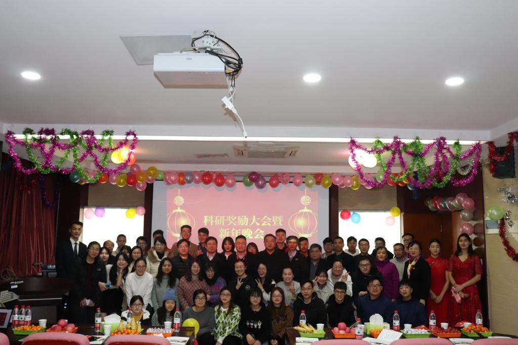 迎新年晚会在欢快的舞蹈《Good Time》拉开序幕。一曲动人婉转的乐器弹唱《青花瓷》用真情诠释了热爱和思念的真谛,带动了全场气氛,歌曲合唱《最炫民族风》和《笔记》将我们带入热烈的自豪和思念中, 赢得了全场热烈掌声。古典舞《COINCIDENCE》中才子佳人们娴熟而动感的舞步,与音乐的完美融合打动了现场所有观众。歌曲《月半小夜曲》、《你是我的眼》是文学、美术与音乐的完美融合,具有带动感,现场掌声此起彼伏。诗朗诵《中国报告》,饱含深情,祖国的强大和所取得的伟大成就震撼全场,是全体中华儿女的梦,激励着我们不断前行和永攀科研高峰。相声《我们的style》游戏《一元五角》和《猜歌名》调动了台上台下互动,将晚会气氛一次次推向高潮。晚会在全体师生深情优美的《我和我的祖国》演唱中结束。