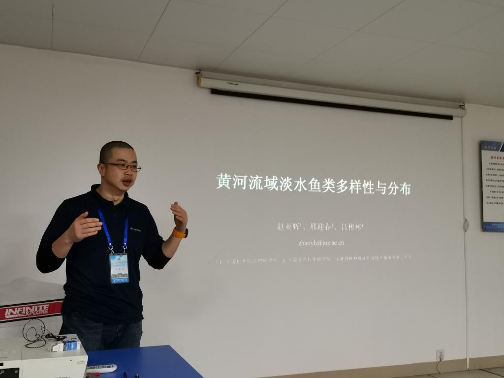 与会人员围绕“黄河流域生态保护和高质量发展”这一主题和自己能做的工作进行了介绍和思考交流。为表示欢迎和诚意,赵海鹏向与会人员尤其实校外人员做了题为“河南几种鱼物种有效性的思索”的报告,就3种中文名中有河南地名的鱼类信阳(鱼盎)、开封鮠和开封半䱗]物种有效性争议情况,结合自己的研究采获标本进行了介绍并表明了的看法,指出上述3种鱼的命名人傅桐生、张春霖等前辈研究者在河南大学工作过的历史事实。赵亚辉博士表示了对看法的认可。赵亚辉博士做了题为“黄河流域鱼类多样性与分布”的主题报告,回顾了黄河流域淡水鱼类研究历史,并着重指出张春霖先生系用现代生物学方法研究黄河鱼类的第一人,介绍了黄河流域淡水鱼类的多样性与分布状况,并真诚的交流了其对未来该流域鱼类生物多样性研究和保护的思考。报告结束后与会人员进行了热烈讨论,涉及话题包括开封水系状况和引黄情况、开封黄河段鱼类资源状况、黄河鲤鱼的过往与现在,黄河流域生态面临的问题,正确全面看待黄河流域水库水坝的良与不良影响且良的影响是主要的。本科生也通过PPT的形式汇报了他们围绕第四届全国生命科学竞赛开展的黄河流域相关工作、工作中出现的问题及需要给予的帮助,与会专家和管理人员给与肯定和针对性的指导。