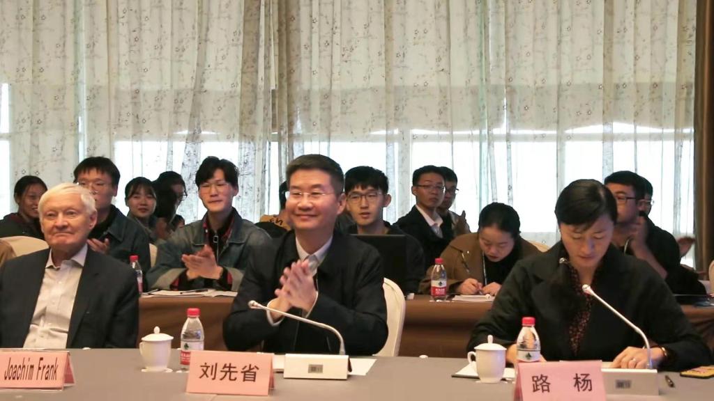 随后,诺贝尔奖获得者哥伦比亚大学Joachim Frank教授、刘先省副校长、生物物理学会纳米生物学分会秘书长北京理工大学黄渊余研究员,共同为中国生物物理学会纳米生物学分会秘书处揭牌,大家共同见证这一激动人心的时刻。揭牌仪式结束后,大家集体合影留念。开幕式由我校科研处路杨处长主持。