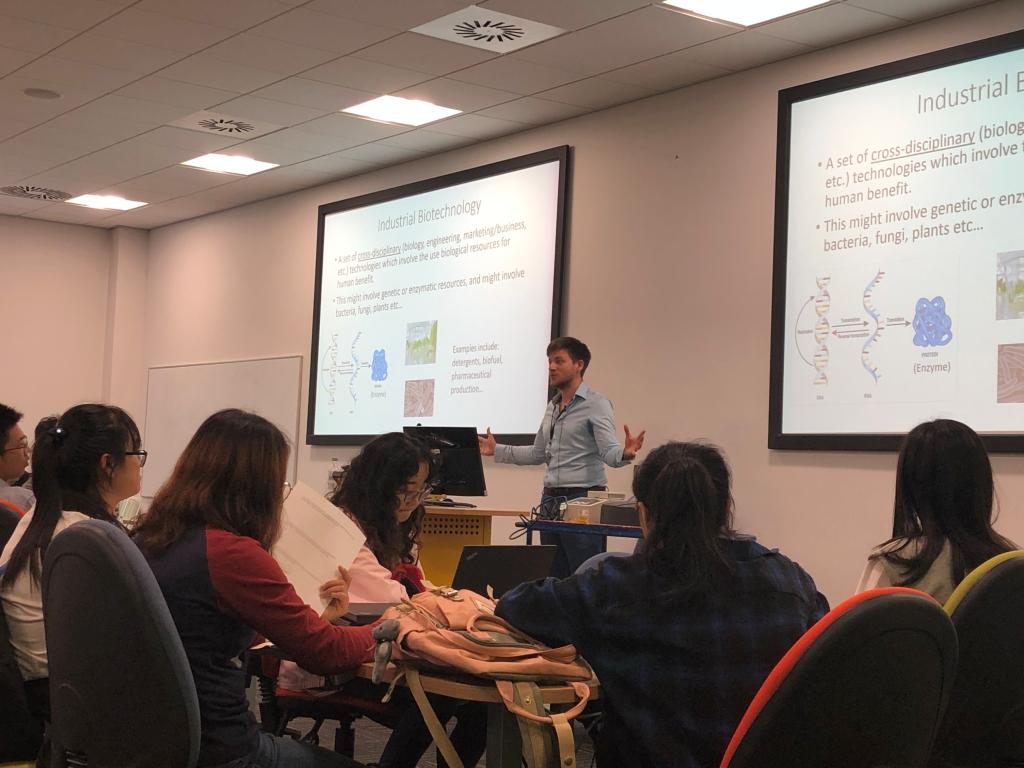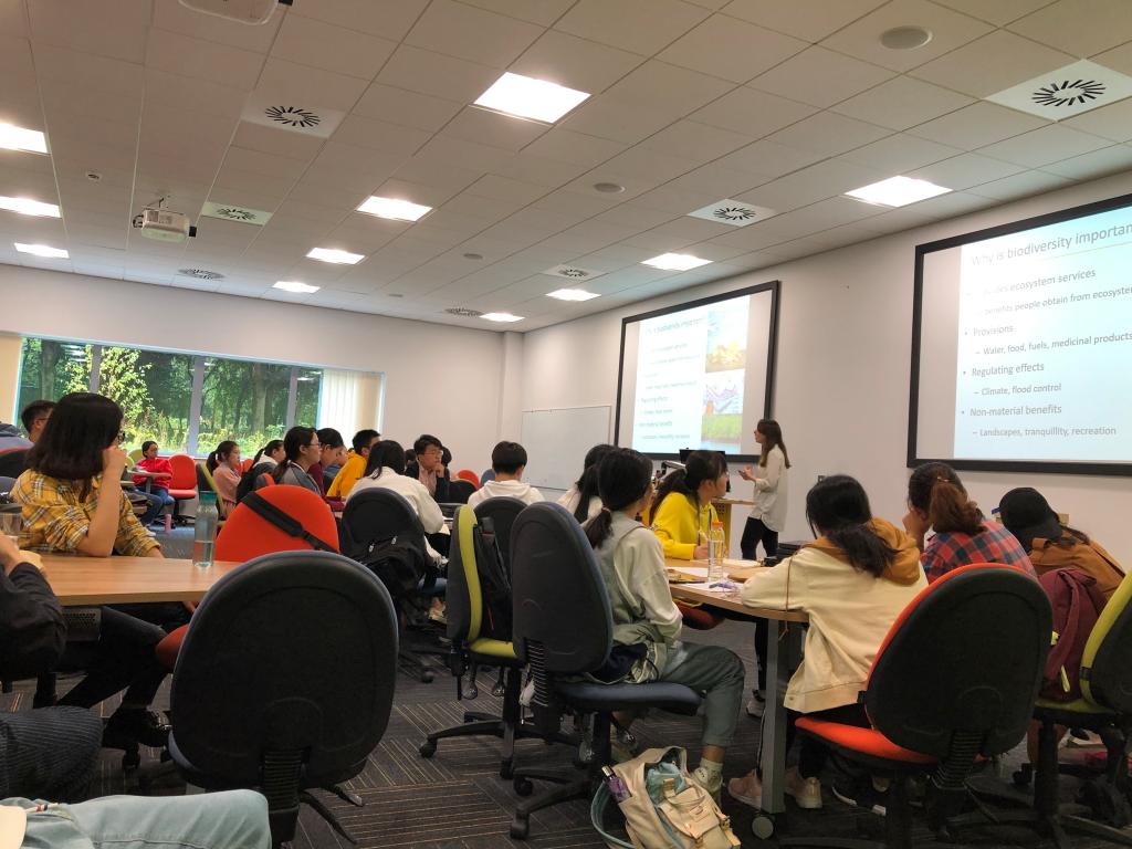 8月5号上午,英国约克大学教师团队在阶梯报告厅为远道而来的生科学子举行了简单的开班仪式,在项目负责人Helena介绍完课程安排后,同学们被分成了三个小组,由专门的教师带领,开启了访学之旅。