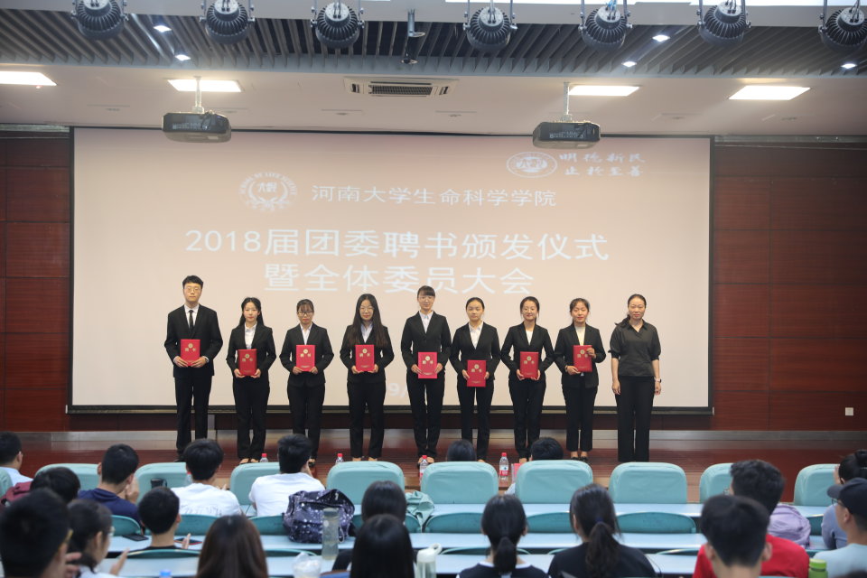 6月6日中午,生命科学学院在圆形报告厅三楼举行2018届团委聘书颁发仪式暨全体委员大会。院党委副书记张亚歌,15级辅导员吴会芳,18级辅导员李靖宇,17级辅导员王松廷出席会议。院团委学生会、青年志愿者协会全体成员参加本次会议。
