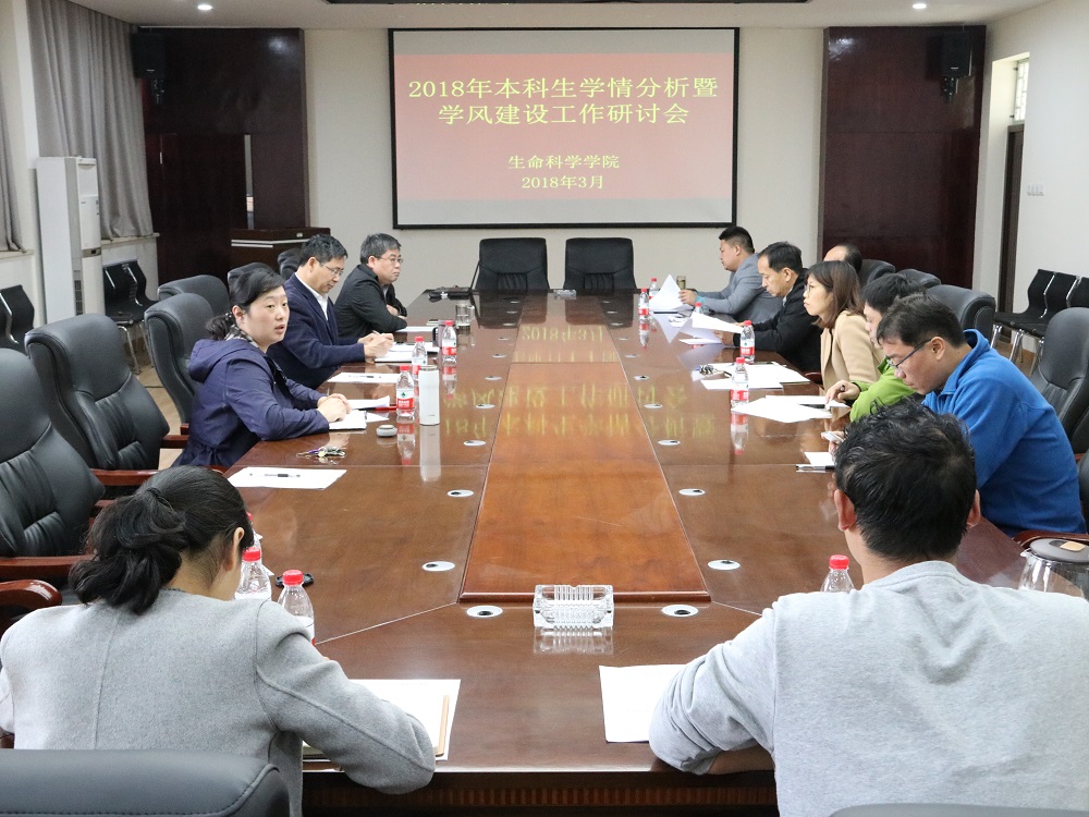 为进一步探讨“一流学科”视域下学风建设问题,3月29日下午,生命科学学院2018年本科生学情分析暨学风建设工作研讨会在学院B201会议室召开。学院党委书记赵东保、副院长安国勇、教学指导委员会专家、各年级辅导员参加了本次会议。会议由学院党委副书记肖艳主持。