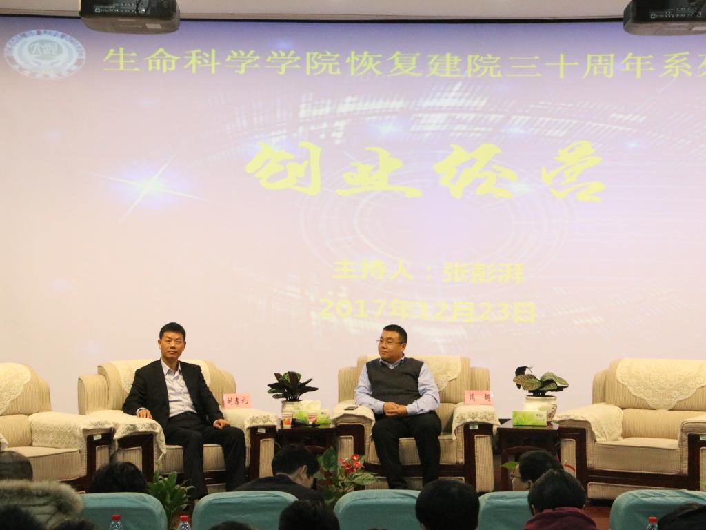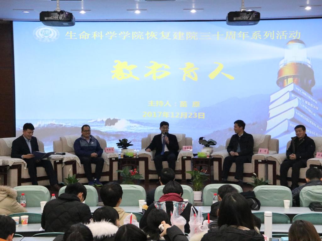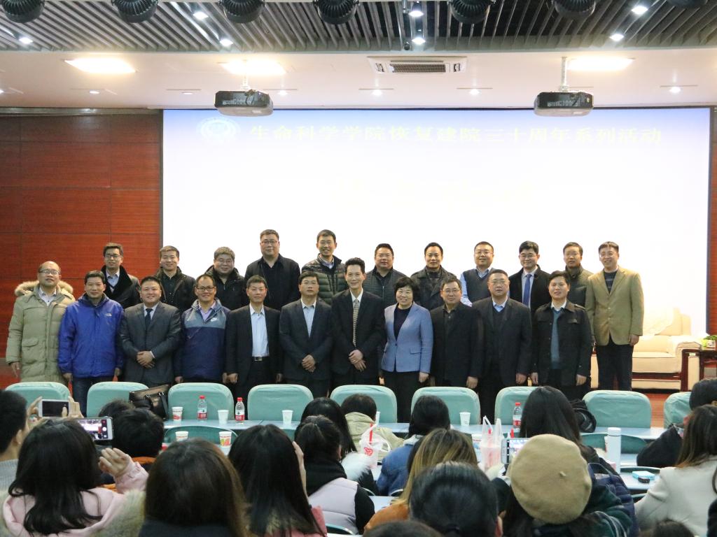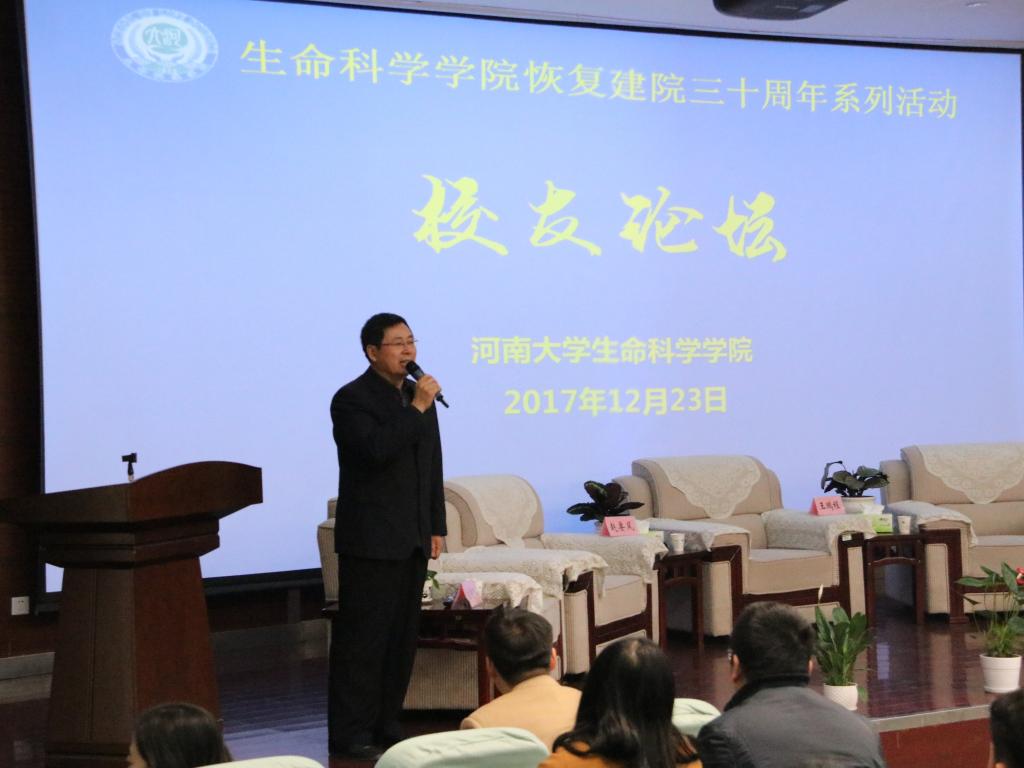 12月23日,生命科学学院恢复建院三十周年院庆系列活动——校友论坛在学院圆形报告厅举行。十余位校友从祖国的四面八方齐聚河大园,庆母院三十岁生日,与学弟学妹分享人生奋斗经验。学院党政班子成员、师生代表400余人参加此次校友论坛。论坛由生命科学学院副院长王刚主持。
