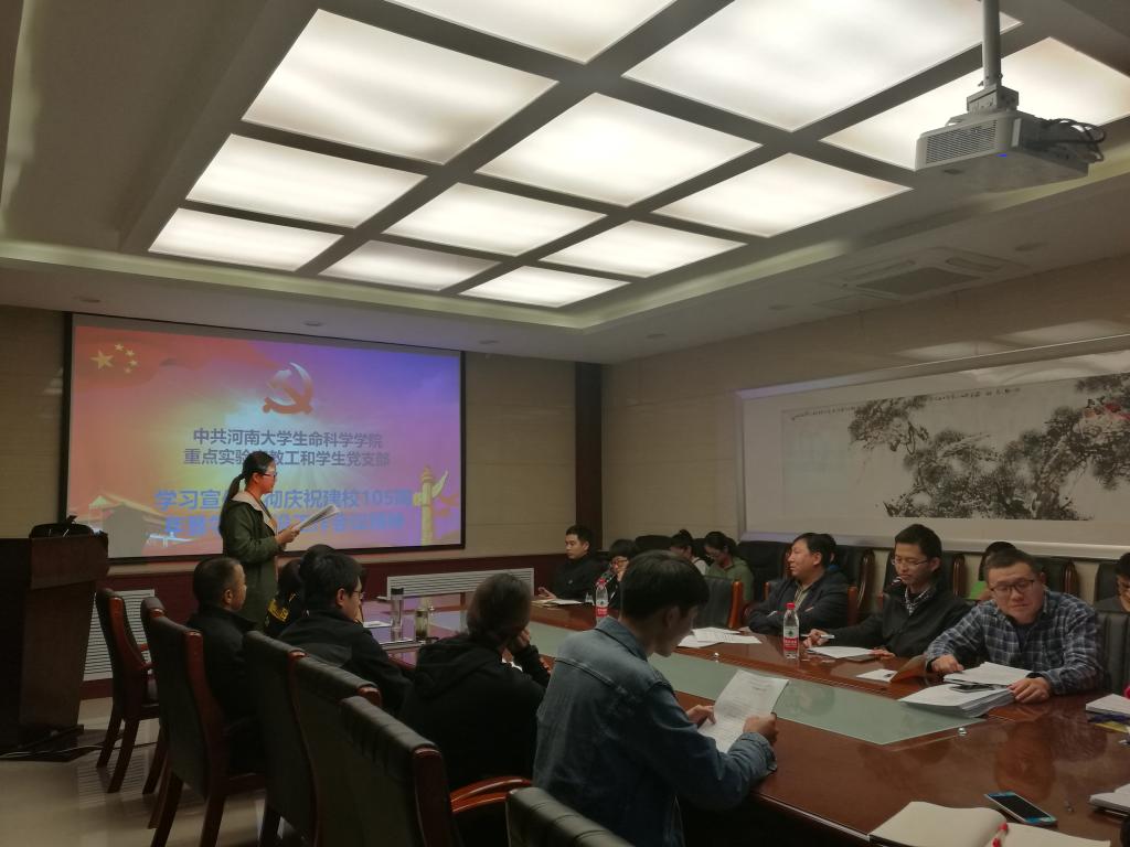 10月19日中午,学院研究生第三党支部组织支部成员学习了学习校领导讲话精神。会议回顾了河南大学百年办学历史与学科建设历程,之后又讨论了如何以一流学科建设带动学校整体发展。学校应以一流学科建设为引领,强力带动学校整体发展,初步建设适应一流高校发展的大学治理体系,学校综合实力大幅度提高,在全国高等教育体系中的地位进一步攀升。最后,所有参会党员达成共识,用实际行动全面深入推进《建设方案》实施,把蓝图变为现实。