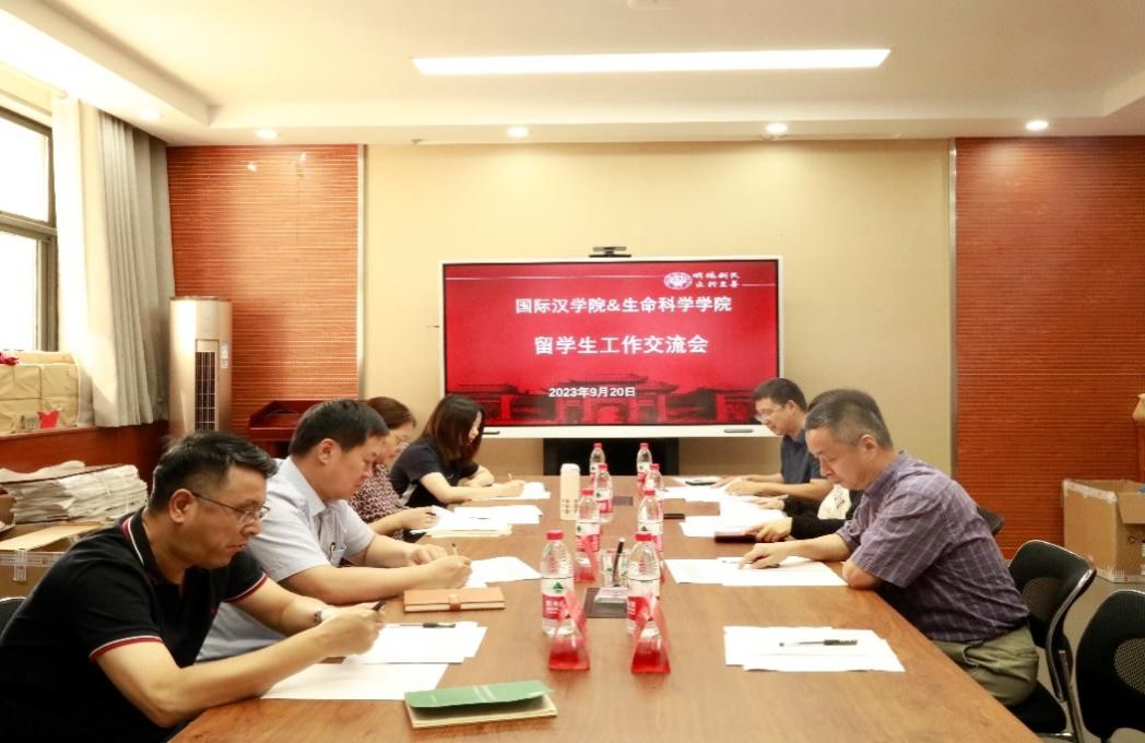 9月20日下午,国际汉学院与生命科学学院留学生工作交流会在生科院党建活动室A111召开。国际汉学院副院长翟秋敏、教务办公室主任阳捷、生命科学学院副院长李志芳、研究生工作与管理办公室主任张彭湃、留学生导师代表许志祥教授、魏建设教授、洪军教授和4位2023级留学生参加会议,张彭湃主持会议。