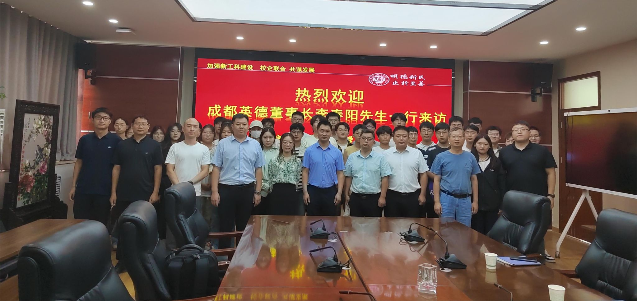 9月9日,成都英德生物医药设备有限公司董事长李春阳、总经理韩飞飞,研发总监靳魁奇一行来我院座谈交流;河南大学教务处副处长朱显峰、生命科学学院副院长赵海鹏、生物工程系主任刘宇鹏、生物工程系相关教师及2021、2022级卓工班同学参加座谈会,座谈会由卓工班班主任孙杨主持。