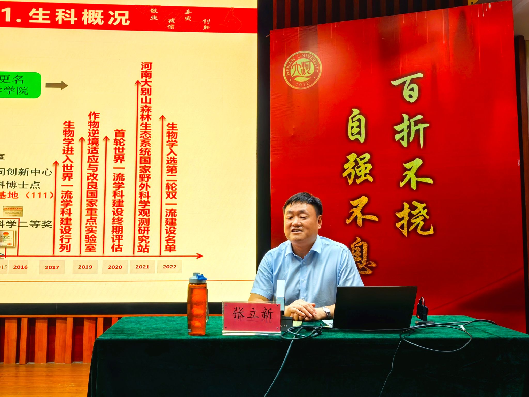 副校长、生命科学学院院长张立新从学院发展历史、人才培养成效、文化与精神三个方面讲授生科第一课《一流学科培育一流人才》。他指出,一代代生科人无私奉献、艰苦创业,生物学科从当初的“一个团队、两间教室、三位老师”,到现在的世界一流学科、B+学科,经历了刻骨铭心、催人奋进的发展过程,希望同学们发扬生科文化、传承生科精神,在一流的人才培养中成为创新拔尖人才。通过观看《大学之道》、《大德曰生》等具有学校精神、学科历史的影片,进一步增强了同学们爱校荣校的情怀和奋发向上的斗志。学院党办主任李靖宇围绕牢固树立理想信念为题,从新生如何提升自身素养、大学如何成就个人价值、入党的基本程序等方面为同学们进行交流,引导学生厚植家国情怀,在大学求学历程中坚定政治信仰,努力成为国家建设需要的合格建设者和接班人。