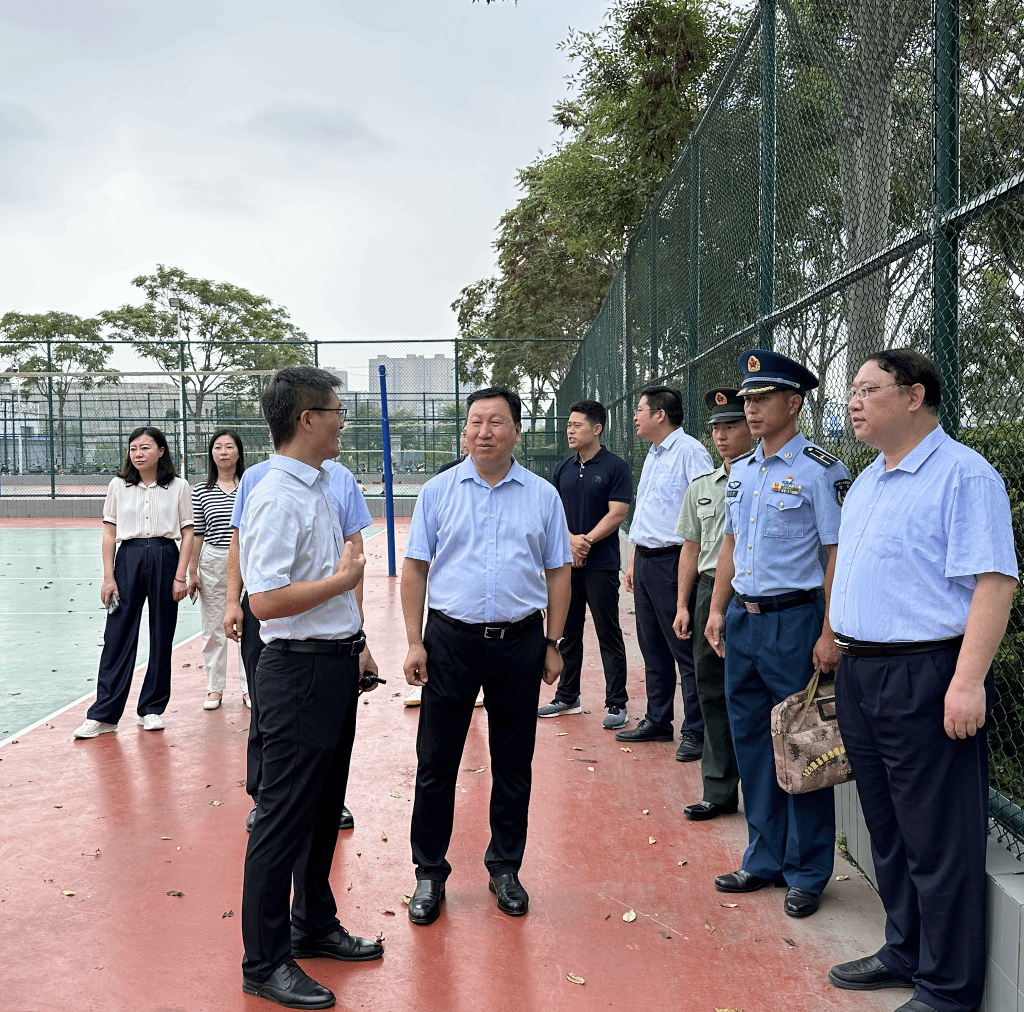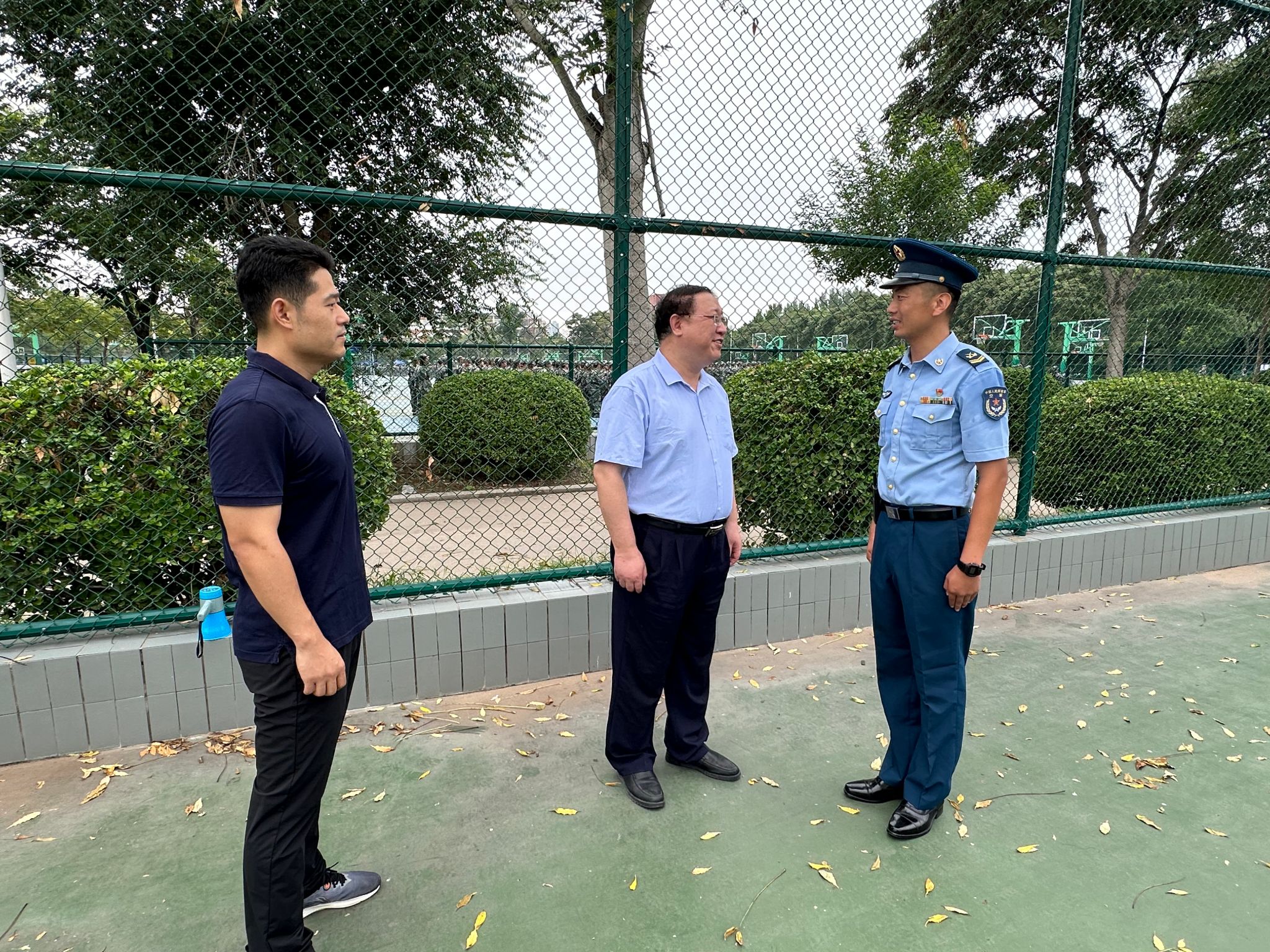 为全面了解学生的军训情况,鼓励同学们坚定理想信念、提升身体素质、顺利完成军训任务,8月19日,生命科学学院执行院长、党委副书记王刚,党委副书记宋永鹏,团委书记张丽来到训练场,看望并亲切慰问2022级军训学生。
