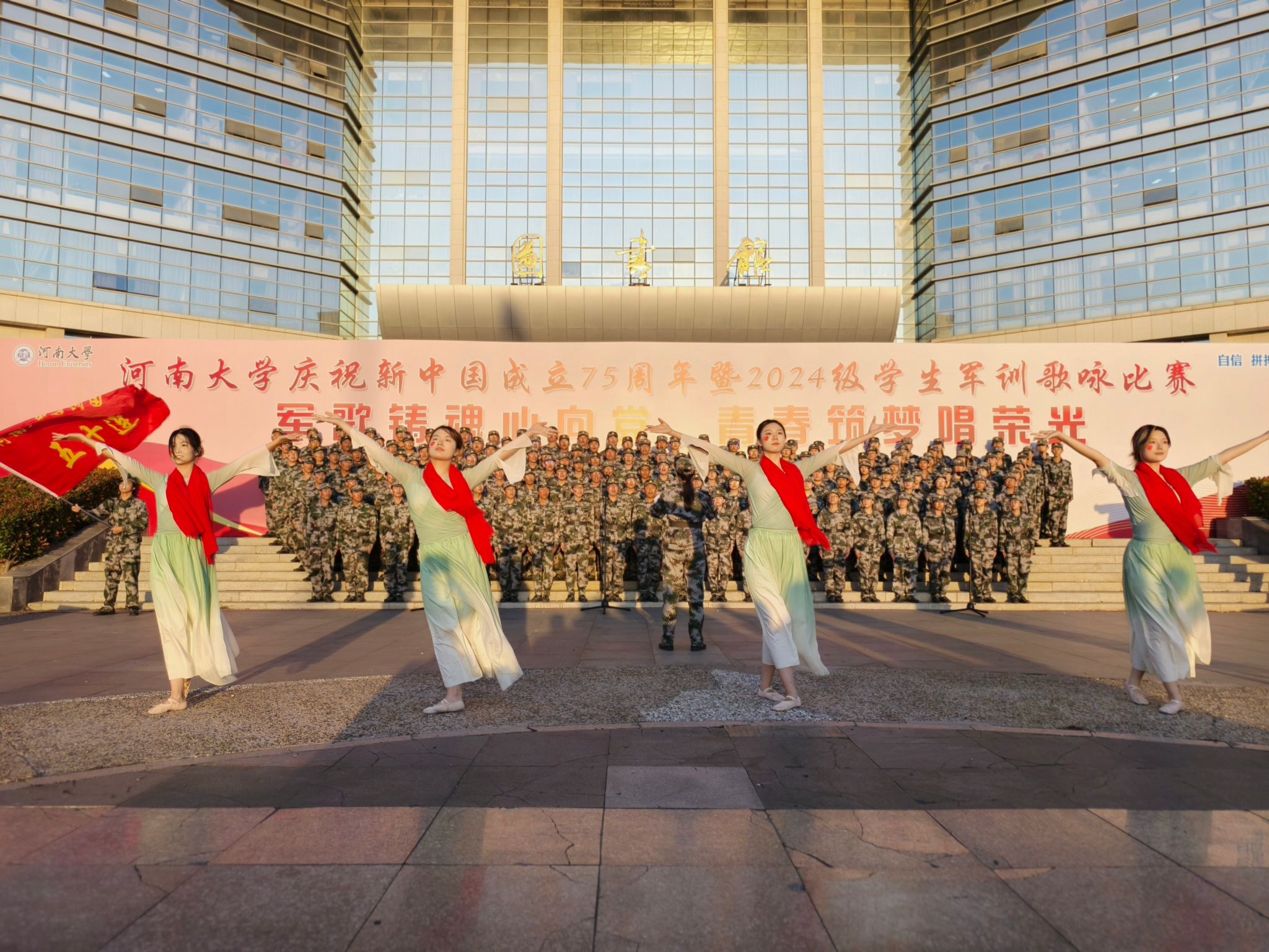 本次比赛以声传情,旨在歌颂新中国成立以来走过的光辉历程、取得的辉煌成就。同学们身着整齐的军训服装,斗志昂扬,意气风发,歌声嘹亮有力,气势磅礴,深深感受到集体的凝聚力和向心力。演唱《河南大学校歌》时,同学们声音洪亮,情感真挚,“嵩岳苍苍,河水泱泱,中原文化悠且长……”响彻明德广场,真实反映了河南大学自强不息、百折不挠的办学历史,唱出了对母校的热爱与自豪;演绎《红旗飘飘》时,他们更是激情澎湃,以满腔的热情和真挚的情感将这首饱含深情的赞歌献给伟大的党和祖国,生动展现了新时代与党同心、与祖国同行、奋发向上的精神风貌,赢得了现场观众阵阵热烈掌声。