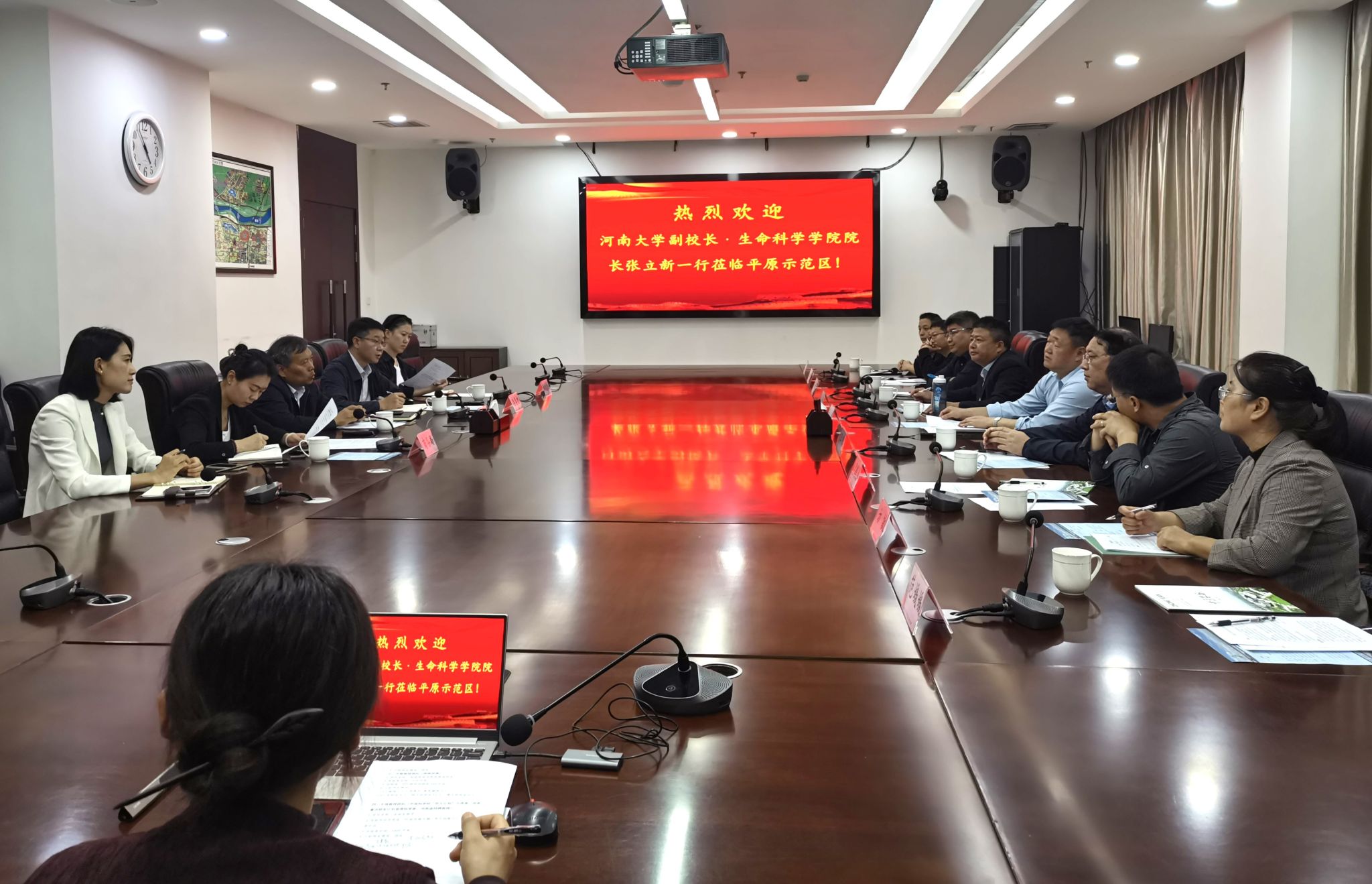 10月15日下午,副校长、生命科学学院院长张立新,执行院长王刚一行赴中原农谷,就加强校地合作、科研平台建设和成果转化进行交流。新乡市农业高新技术发展促进中心主任杨海峰,平原示范区党工委委员、管委会副主任李季坤,副院长赵海鹏、李国勇、苏鹏,学院高层次人才代表方敏,平台负责人代表李华、范媛媛,平原新区农高中心、商务局相关负责同志参加相关活动。