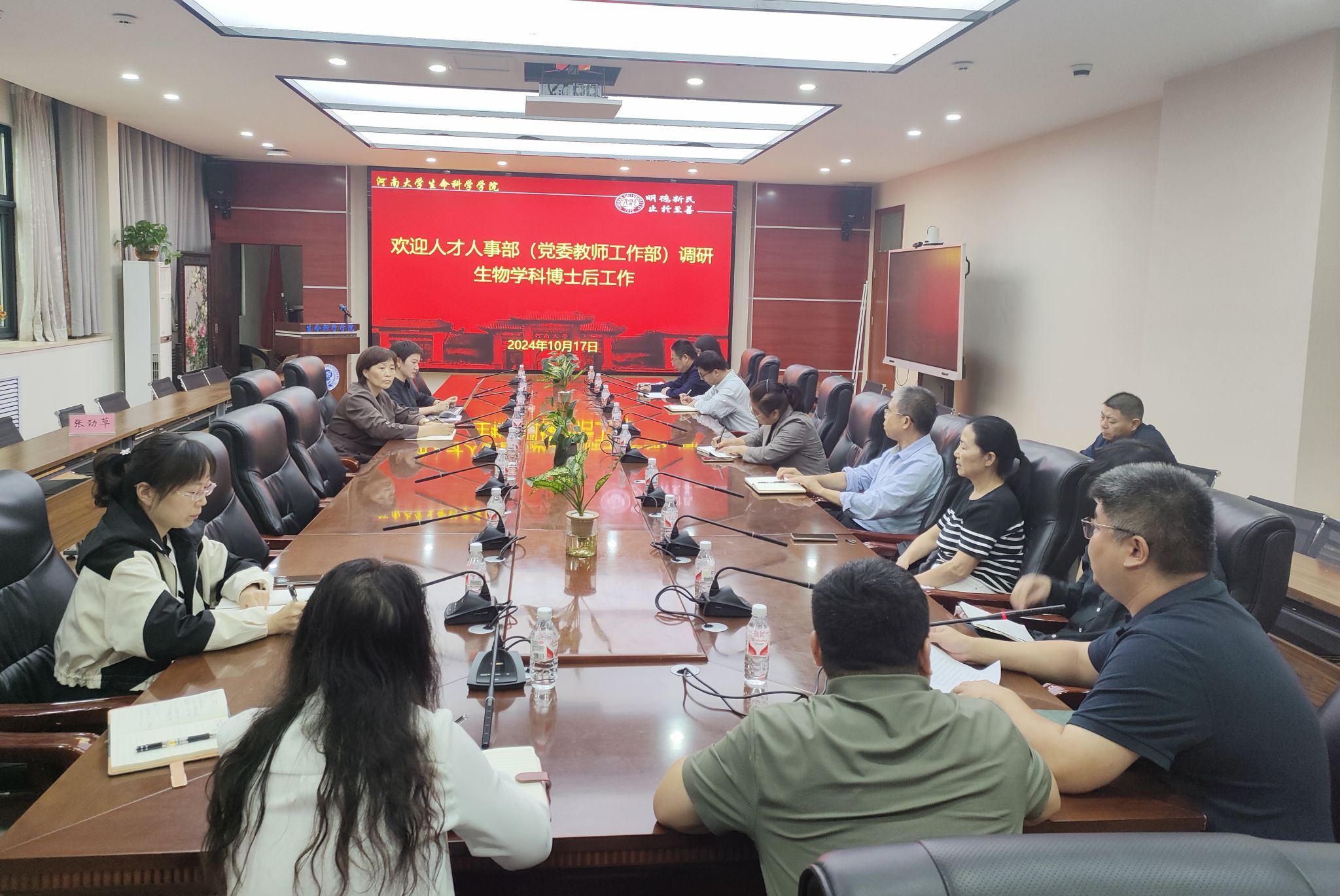 苏鹏对王波一行的到访表示欢迎,感谢人才人事部(党委教师工作部)长期以来对生物学科博士后工作的关心、支持与帮助表示感谢。他汇报了生物学科生物学和生态学两个博士后流动站的基本情况,并从博士后招聘与管理、博士后项目申报与获批、博士后成长成才等方面详细介绍了生物学科博士后工作情况。他希望学校今后在博士后工作上给与更多支持,助力生物学一流学科建设。