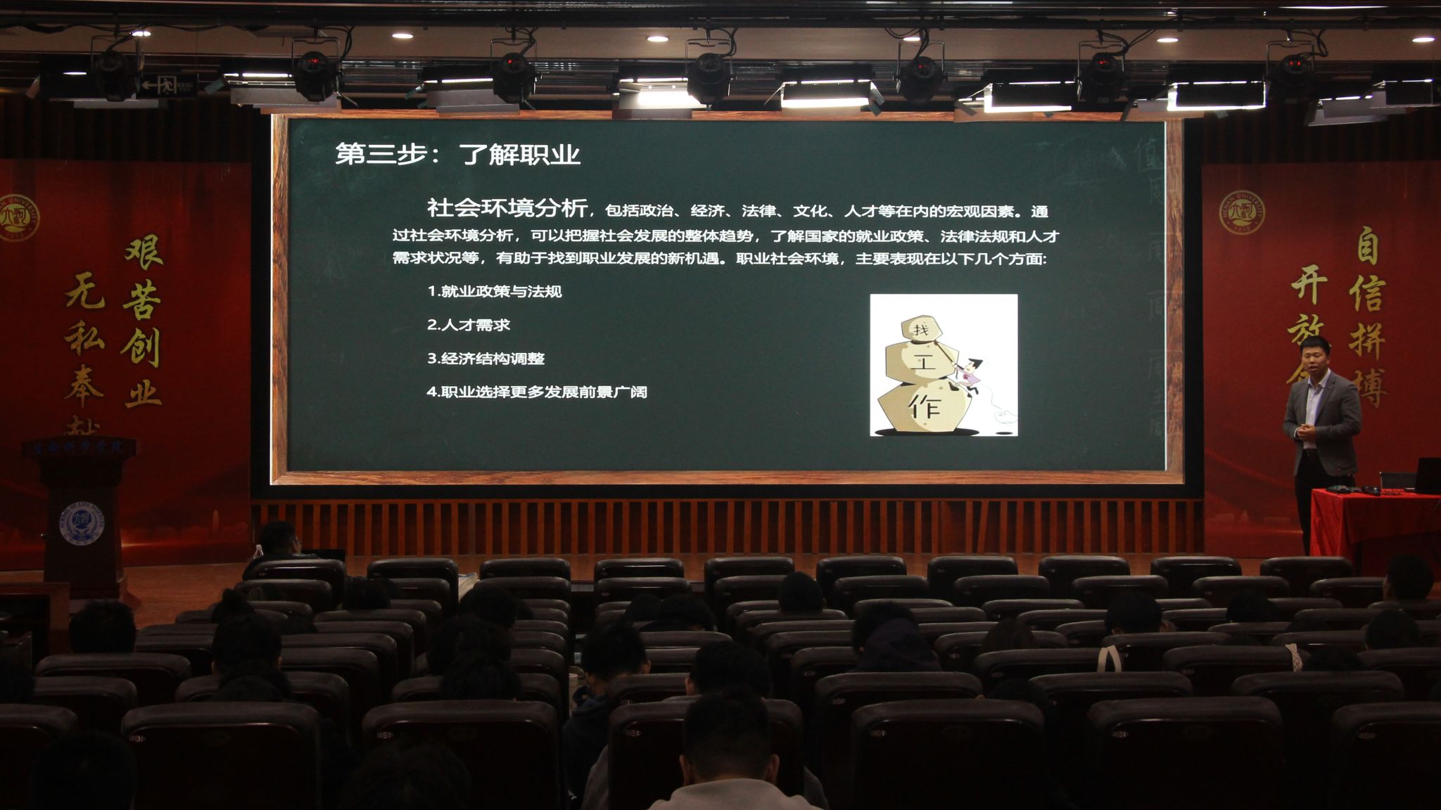 宋晓峰结合《大学生职业规划》和《大学生就业指导》的教学目的,用详实的数据介绍了目前的就业形势,系统讲述了职业生涯规划法的主要内涵,提醒同学们要尽早认识到个人职业规划的必要性和紧迫性,充分剖析个人、行业、职业以及社会需求,通过分析社会环境、行业环境、组织环境、家庭环境以及新经济下的职业类型,为同学们后续的综合决策和求职行动提供参照,鼓励同学们按照个人大学生涯规划,有的放矢,借助生物学科优势平台,从个人“硬实力”和“软实力”两方面提高个人综合能力,增加个人求职竞争力,实现大学生涯的自我升级。