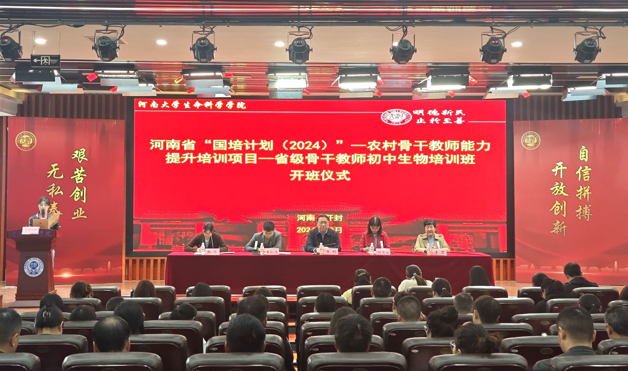 10月23日上午,河南大学“国培计划(2024)”--农村骨干教师能力提升培训项目--省级骨干教师初中生物培训班在生命科学学院学术报告厅举行开班仪式。执行院长王刚,生物科学系主任刘凌云,行政办公室主任王松廷,成教办负责人李黎,班主任张杨雨、陈小迪及50名来自全省的初中生物教师参加了开班仪式,仪式由国培课程导师张彤主持。